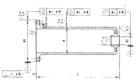 卷筒組是起重機、啟閉機主要受力部件,起重機配件用卷筒外繞起重鋼絲繩,其結(jié)構(gòu)(示意)如圖2,從圖中可看出,它與大齒輪采用止口定位、螺栓組聯(lián)接,裝配后要保證卷筒上的軸承與大齒輪上的軸承同軸,精度要求在8級。